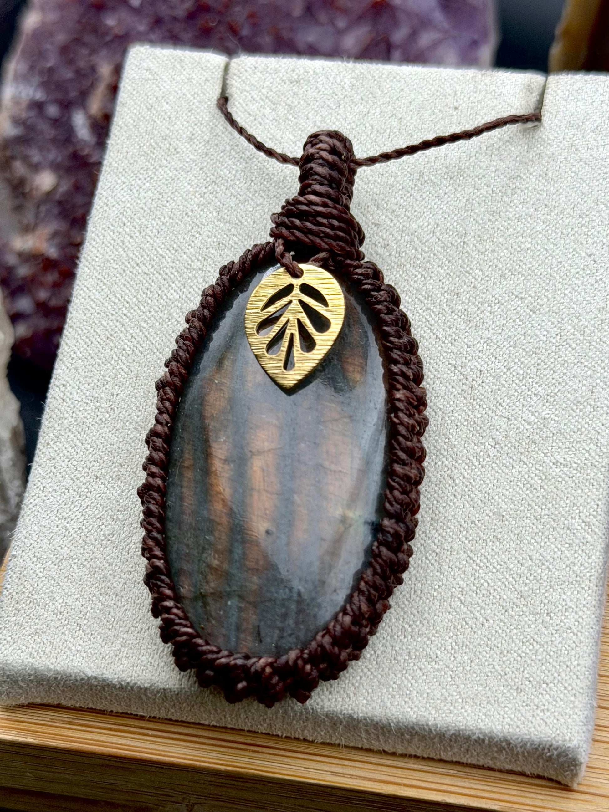 Intricate Macrame Artistry: The stone is expertly held within a custom, hand-knotted macrame bezel. This ancient fiber art technique uses high-quality, durable thread to create a frame that is both lightweight and incredibly strong, highlighting the stone’s organic shape while providing a secure, metal-free setting.